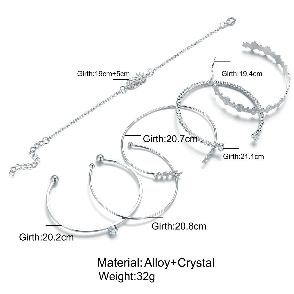 6 Piece Geometric Bangle Set With Luxe Crystals Silvertone Bracelet ITALY Design
