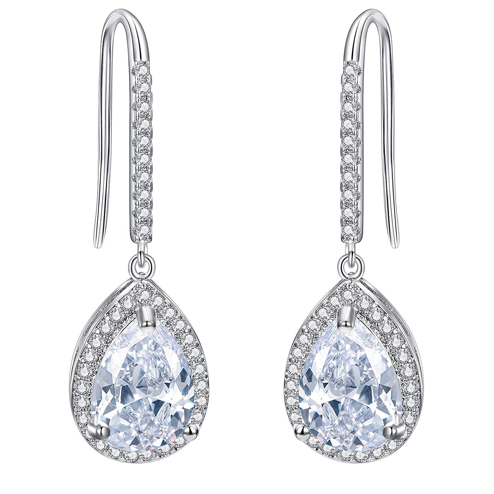 Pear Cut White Crystal Pav'e Linear Dangling Drop Earrings