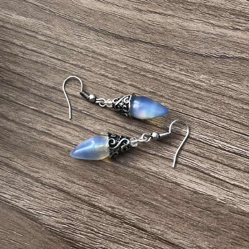 Серьги-подвески с подвесками в виде лунного камня из 14-каратного белого золота